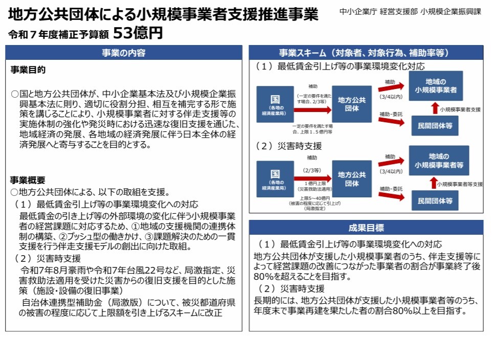 この資料の中の事業概要の(3)で「小規模事業者持続化補助金」という名称が出ており、この予算に基づいて、2026(令和8)年度の小規模事業者持続化補助金が実施されることになります。
